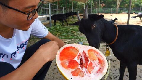 2. 食量:尝试吃佛手瓜的山羊,食量并不大,且在食用过程中,会与其他食物搭配。